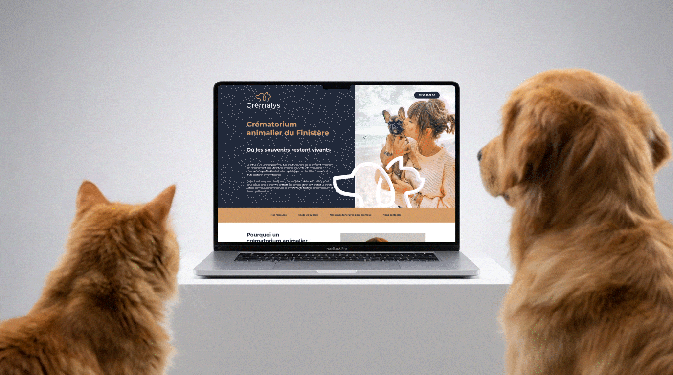 Alain et Mickaël avaient une vision très claire : créer un lieu de proximité pour que les familles du Finistère n’aient plus à voir partir leur animal dans un autre département pour sa crémation. Ensemble, nous avons transformé cette idée en une marque, une expérience sur site et un écosystème digital cohérent, du logo à la présence en ligne.