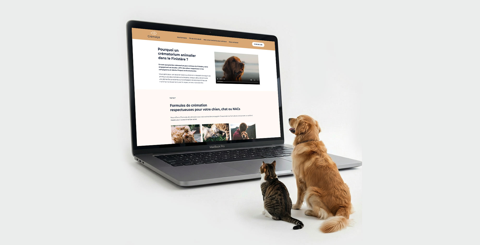 À Milizac-Guipronvel, Crémalys est le premier crématorium animalier du Finistère. Avec Alain et Mickaël, Voilà Le Topo a imaginé une identité, un site et des contenus qui prolongent leur engagement sur le terrain : accompagner les familles et leurs animaux avec respect, clarté et proximité.