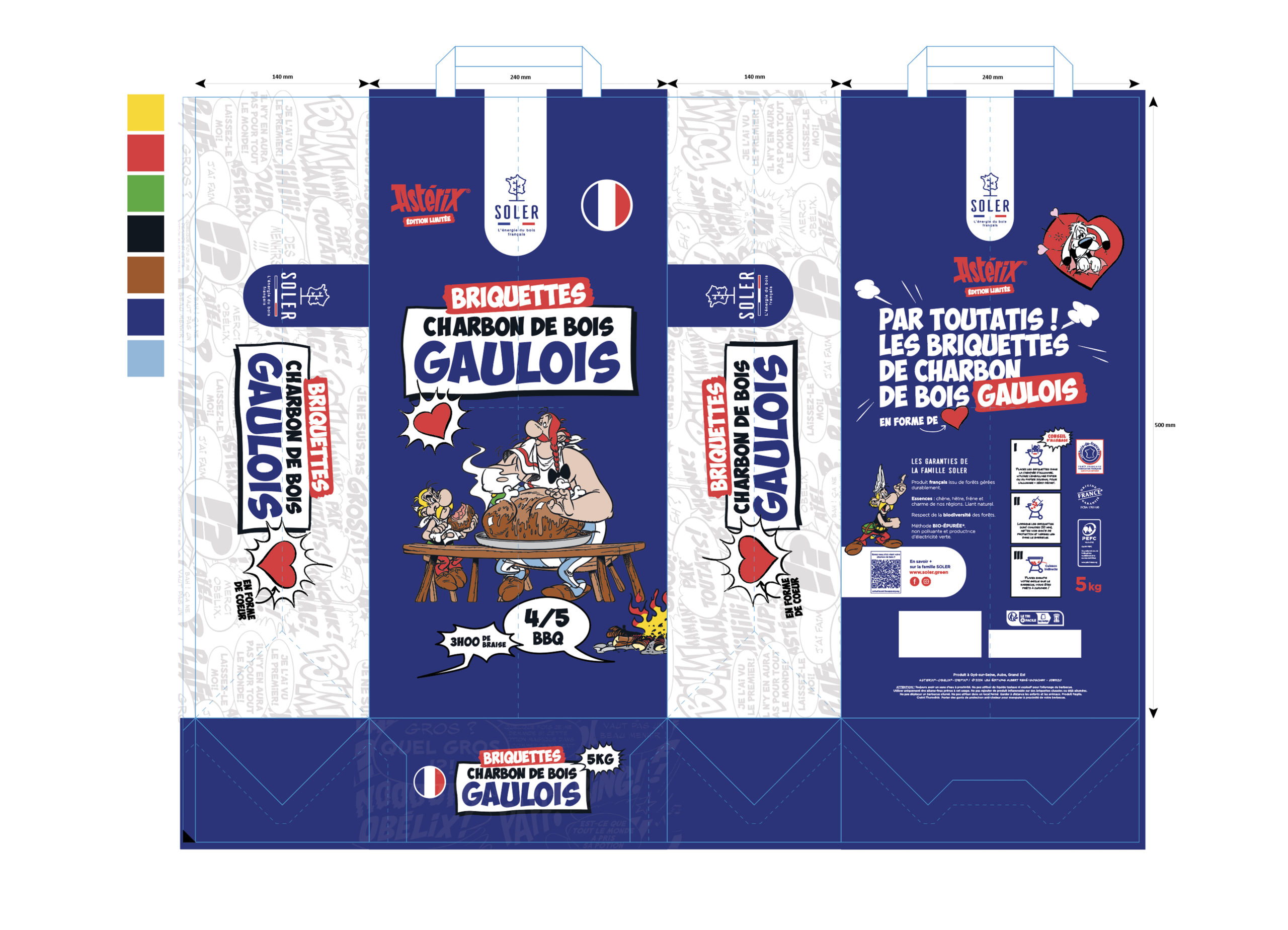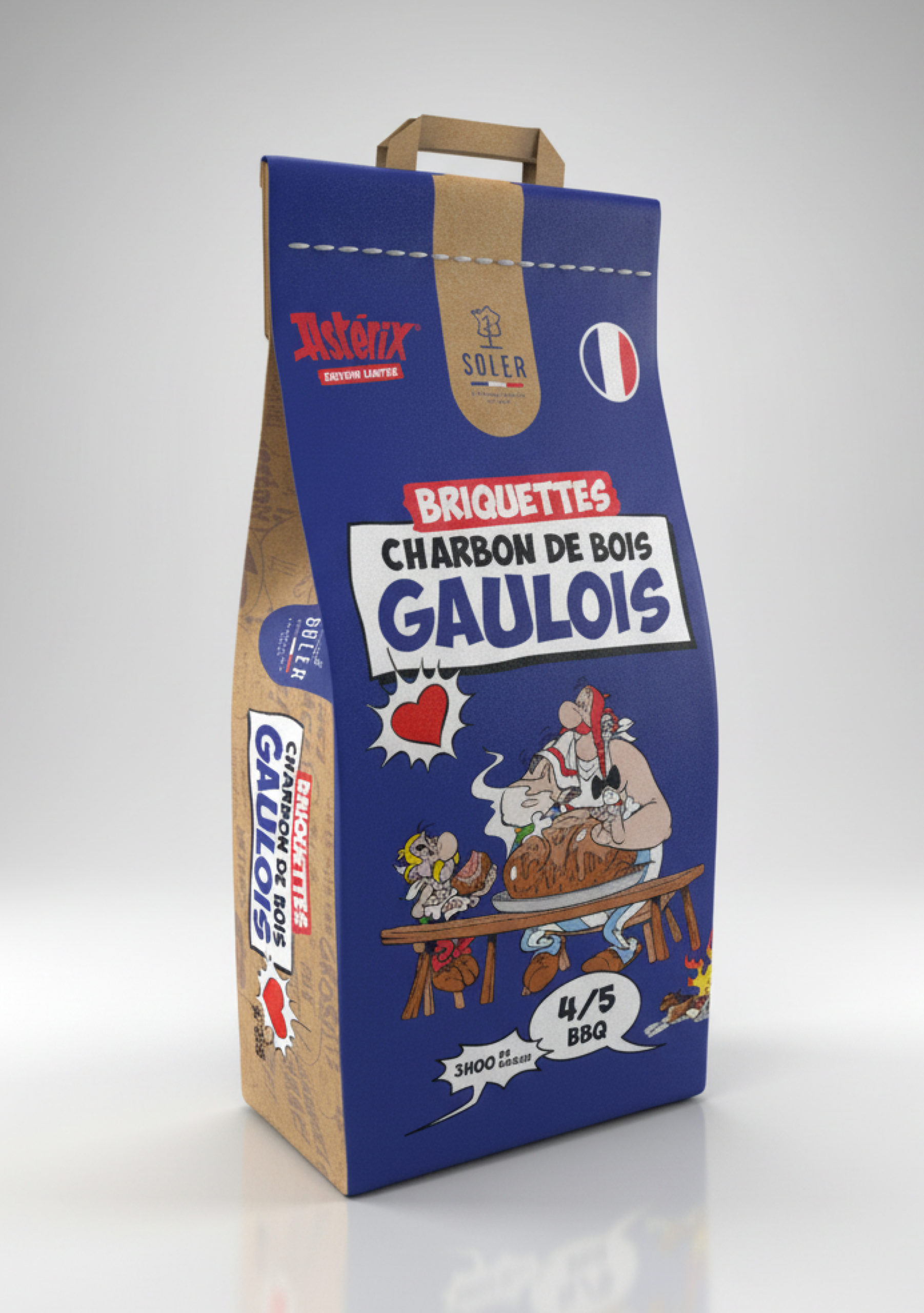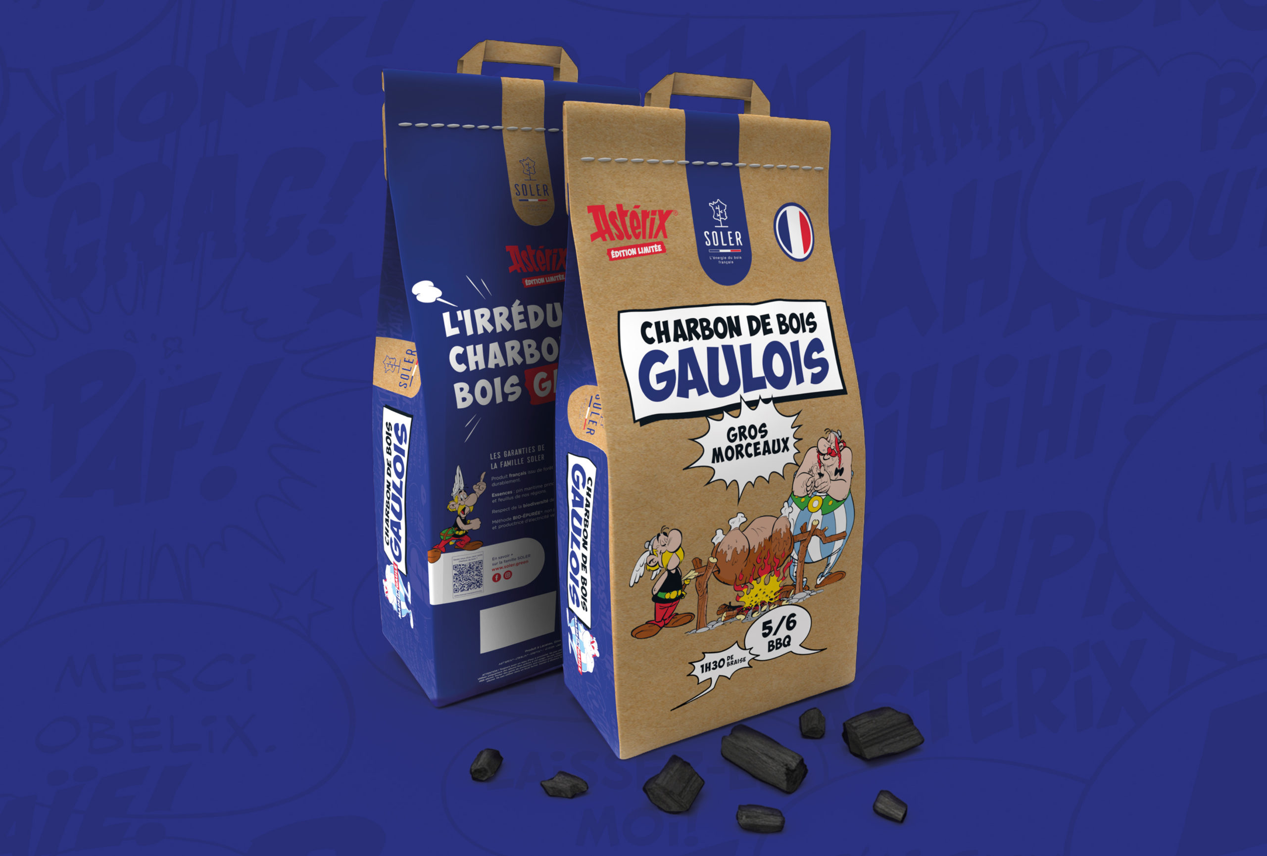 Voilà Le Topo a créé l’identité visuelle et le packaging de Soler, pour une édition limitée de charbon de bois reprenant les codes d’Astérix.